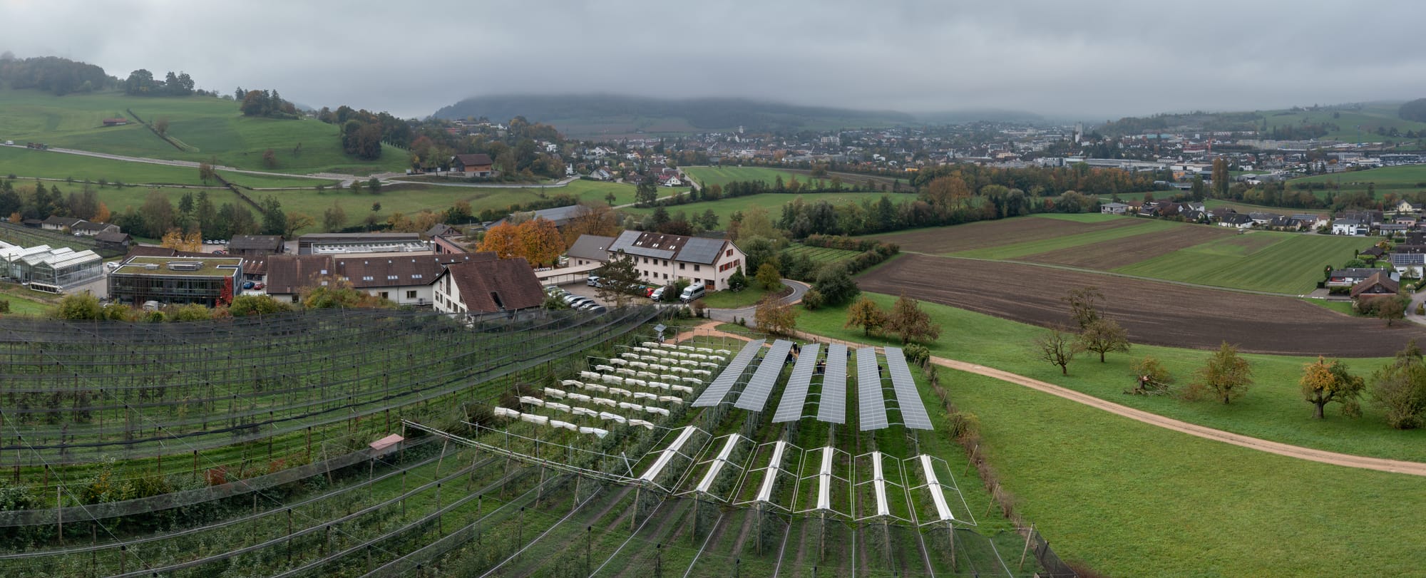 Die Solarpanels von AgriSolar Forschung schützen Obstanlagen, Ackerflächen und Grasland und produzieren Strom. Das Projekt AgriSolar Forschung stellt sicher, dass Bäuerinnen und Bauern, die die Kulturen mit Solarpanels bewirtschaften, Fakten zu agronomischen und ökonomischen Auswirkungen erhalten. Das Projekt wird laut Mitteilung "mit einem ganzheitlichen Forschungsansatz praxisnah begleitet" und vom Forschungsinstitut für biologischen Landbau (FiBL), der Liebegg und dem Kanton Aargau getragen.