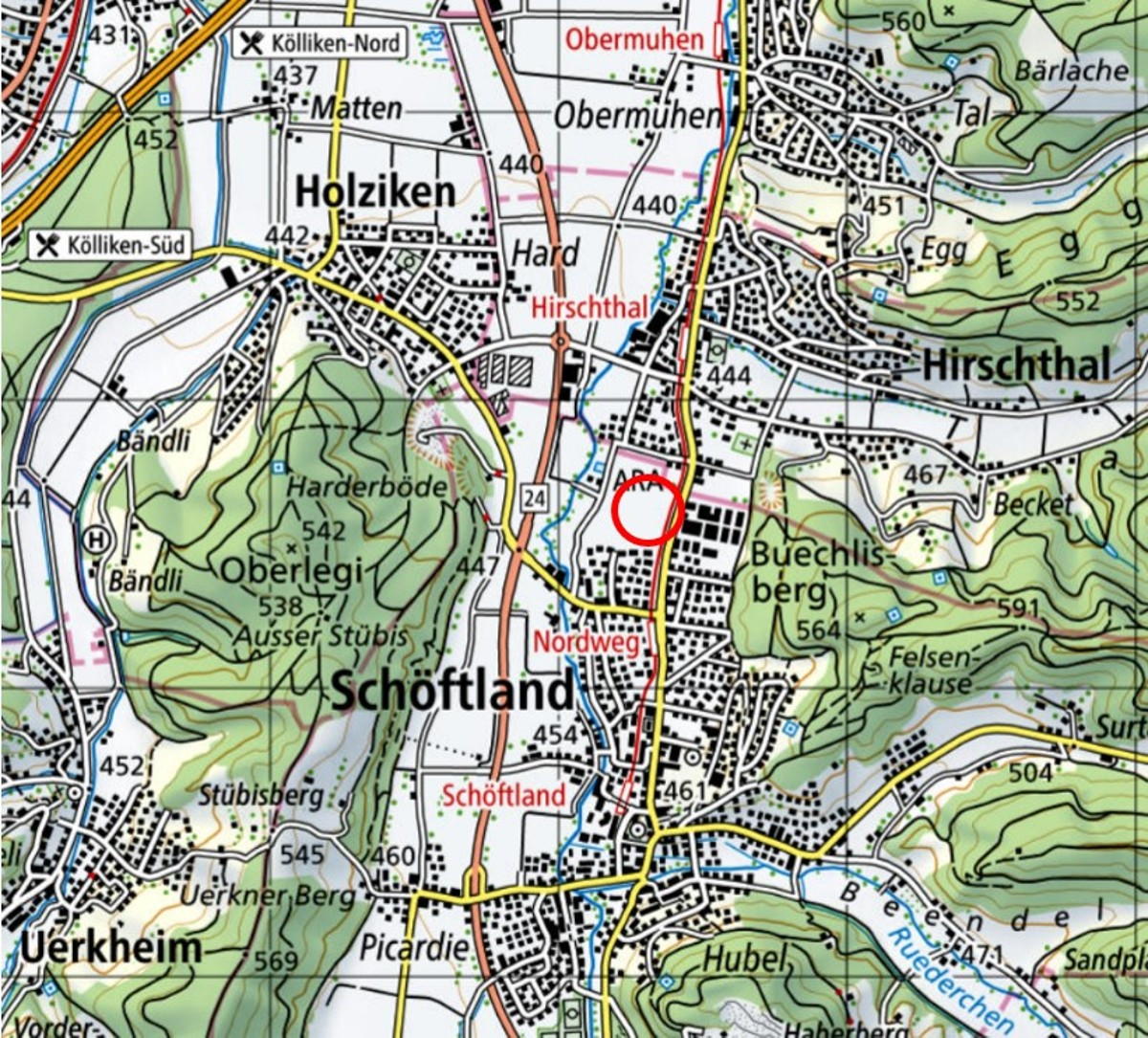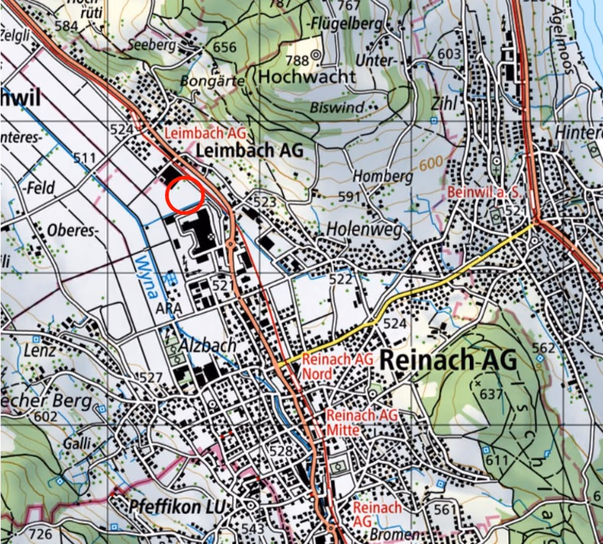 Vorgeschlagener Standort "Schöftland, uf em Feld". Karte: Kanton Aargau