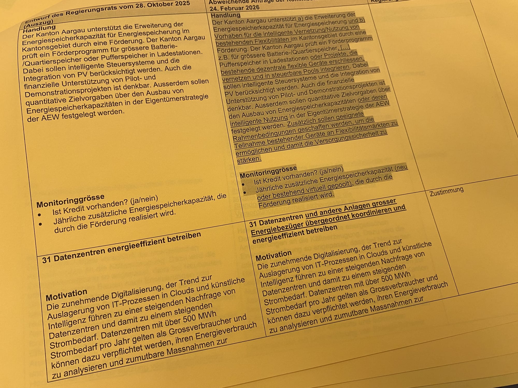 Nach intensiven Beratungen sprach sich die Kommission an ihrer Sitzung vom 24. Februar 2026 für die überarbeitete kantonale Energiestrategie "energieAARGAU 2025" aus. Mit 11 zu 3 Stimmen hiess sie die Vorlage mit verschiedenen Änderungen gut.