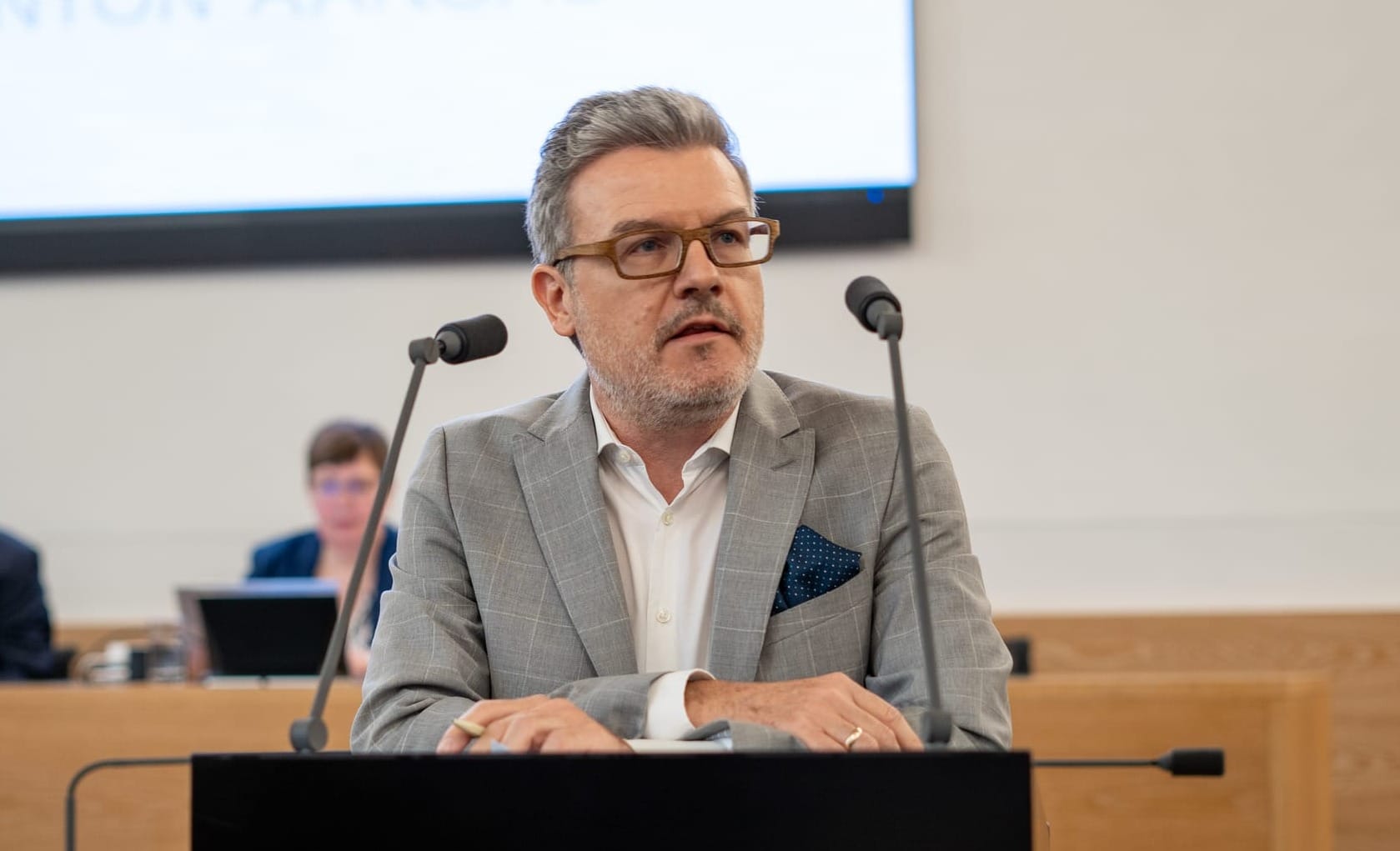 Erstes Traktandum ist der letztes Mal (wegen eines medizinischen Problems einer Grossrätin) nicht fertig beratene Vorstoss der FDP-Fraktion (Sprecher: Lukas Pfisterer). Darin geht es im ersten materiellen Traktandum nach 10 Uhr darum, ob von künftigen SNB-Gewinnausschüttungen auch die Gemeinden im Aargau profitieren können sollen.